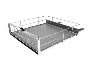 Avec plateau d'égouttage. Dim°.: L.502 x P.508 x H.152 mm. Charge max. 9 kg.