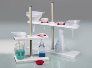 Support en polypropylène blanc, adapté pour 2 entonnoirs de Ø.40 à 160 mm