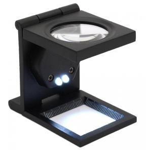 Loupe aplanétique, compte-fils, pliable - Ø.25 mm, avec éclairage LED - Grossissement : 8x