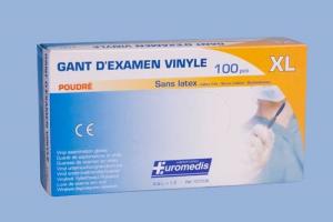 Gant d'examen en vinyle, hypoallergénique, poudré, non stérile - T.M (7/8)