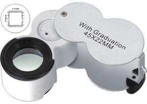 Loupe de poche pliante avec réticule gradué - Lentille Ø.22 mm en verre minéral - Gr.: 45x