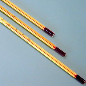Tige émaillée jaune. Liquide rouge. Anneau de suspension. Longueur : 305 x Ø.6/7 mm