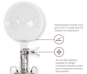 - Des adaptateurs sont également disponibles pour connecter l’orifice de sortie de la chambre d’expansion au cône d’entrée de l’Andersen Cascade Impactor (ACI).