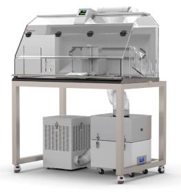 - Le caisson de ventilation peut être équipé en option d‘un filtre H14 HEPA et/ou à charbon actif pour les vapeurs de solvant.