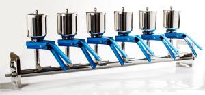 La rampe de filtration à 6 postes, est entièrement réalisée en acier inoxydable 316L. Elle est spécialement étudiée pour la filtration simultanée de plusieurs échantillons.