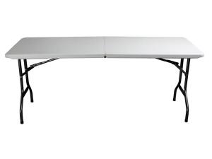 Table pliante, Plateau en PE blanc avec chassis en acier - Dim°: L.1800 x P.750 x H.740 mm