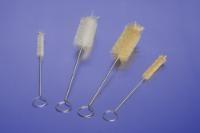 Goupillon pour tubes à essais, à bout retourné. De haute qualité, avec armature en acier inoxydable. Autoclavable.