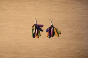 Boucles oreilles "flamme" Réalisation artisanale en ivoire végétal teintes d'automne.