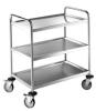 Chariot en acier inoxydable à 3 plateaux fixes, avec 4 roues pivotantes dont 2 avec freins
