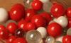Billes en verre de tonalités variées à dominante rouge, pour décorations personnalisées
