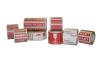 |   | Ecriture blanche sur fond rouge. Prés° en rouleau sur mandrin (76 mm) de 1250 étiquettes.