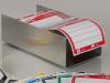 |   | Ecriture rouge sur fond blanc. Prés° en rouleau sur mandrin (76 mm) de 1250 étiquettes.